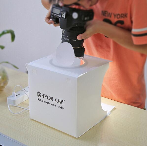 characteristics 100% Brand new! all-in-one portable studio, easy to use & take apart. the photo lightbox is designed for small items of photography enthusiasts, artisans, artists, students and other online sellers, professionals and product advertising clients. studio light box allows quick and easy shooting of small products such as jewelry, accessories, toys, watches, appliances and other items. set up your own photography studio anywhere in a matter of minutes, you can unfold this has taken light studio box and put it on any surface to get the perfect setting for small business photography articles, take pictures for them. portable snap button snap frame design, easier to install and carry, built-in led light, medium light supply and prevents shadows and reflections on your photos. with 6 EVA bottoms (Black, white, orange, red, green, blue), and internal LED light panel and USB cable (you should prepare a USB charger, power bank, or USB hub to power it ). Mini and light weight, just like a book when folded, easy to take anywhere.   specifications ShellMaterial: PVC Scenarios Material: EVA, non-woven Shell Color: White Color temperature: white Fresh, 2 * 5600 K Light source: 2 LED panels with 2 * 20 pcs beads on it bright: About 2 * 550 lumens Power Source: USB 5 V port: Micro USB, universal Android device port Rated Power: 2 * 3.5 W Size of the tent: About 24x23x22 cm / 9.4x9x8.6 “(unfolded) 23x23x1.5 cm / 9x9x0.59 “(folded)   attention please wait 3-5mm size deviations due to manual measurement.   Package Included 1 x Main Studio Box (with 2 LED panels) 1 x Round PVC Plate 1 x Soft Bag 6 x EVA Scenarios (6 different colors) 1 x Micro USB Cable 1 x User Manual